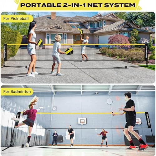 - 【2-in-1 Net System】With adjustable heights ranging from 3ft to 5ft, this pickleball net can be used for both pickle ball and badminton. It can be set up indoors or outdoors, allowing you to play pickleball games anytime and anywhere