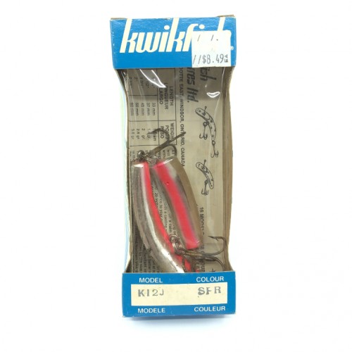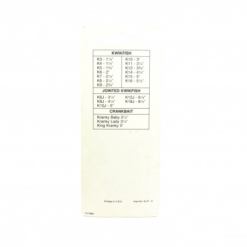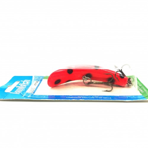 Pre Luhr-Jensen Kwikfish K10, RFB Red Fluorescent Black Spots Color New on Card Old Stock. Pre Luhr-Jensen and Pre Rapala. The K10 is listed as 3″ long and weighing 7 grams. New old stock here. Card is in good condition, lure is new on card, see photos. Cast or troll. Awesome lure for fishing, especially muskies, big pike, bass and walleye and very tough to find. Grab this one while you can. Collect or fish.