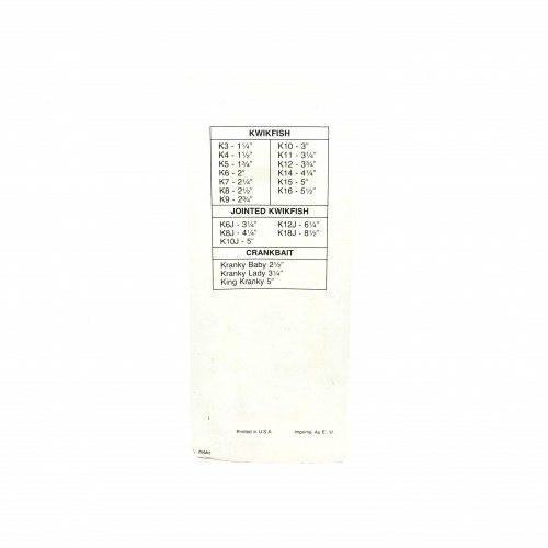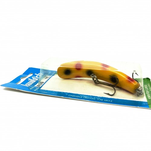 Pre Luhr-Jensen Kwikfish K10, YE Yellow Red/Black Spots Color New on Card Old Stock. Pre Luhr-Jensen and Pre Rapala. The K10 is listed as 3″ long and weighing 7 grams. New old stock here. Card is in good condition, lure is new on card, see photos. Cast or troll. Awesome lure for fishing, especially muskies, big pike, bass and walleye and very tough to find. Grab this one while you can. Collect or fish.