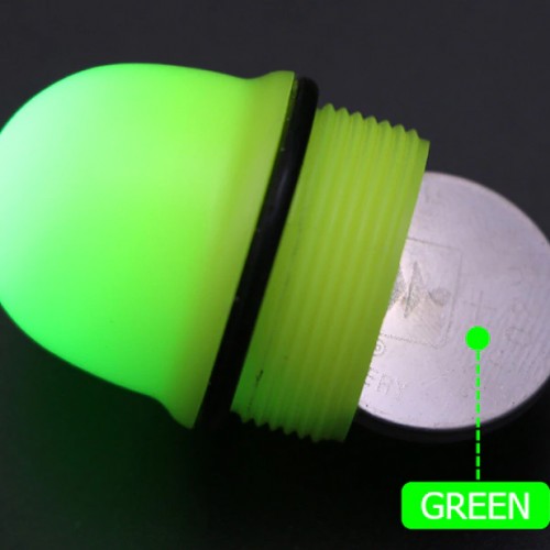 Light up bobber that can be either green or red depending on which way you insert the battery. Battery can be stored in the top compartment so you always have the batter with you.