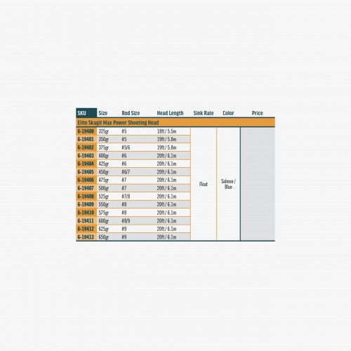RIO Skagit Max Power heads cast the largest flies and the heaviest sinking tips with exceptional ease. The unique weight distribution deeply loads rods for long casts while the powerful front taper delivers enough punch to turn over all the weight you need to get the fly into the strike zone. Shorter head lengths make the Max Power the perfect choice for shorter rods or when space behind the caster is limited. The low stretch core gives incredible levels of sensitivity when casting and fishing, and provides enhanced detection of takes, more positive hook sets, and far greater control when playing a fish. In addition, this line is built with SlickCast, creating the slickest, most durable coating on the market—producing the least amount of friction ever measured in a fly line.