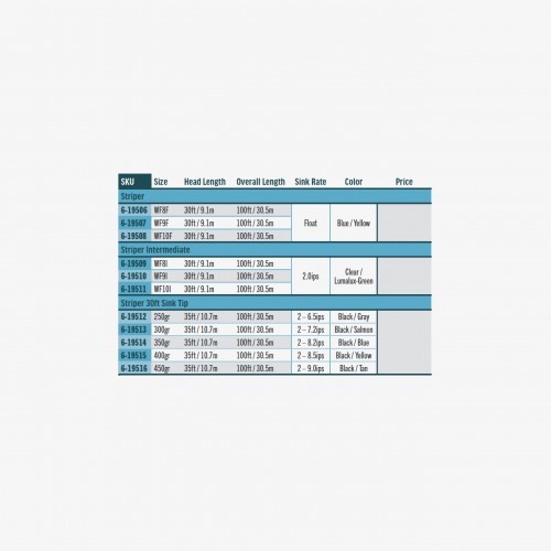 A complete series of fly lines developed for the striper angler, with ultra-slick performance