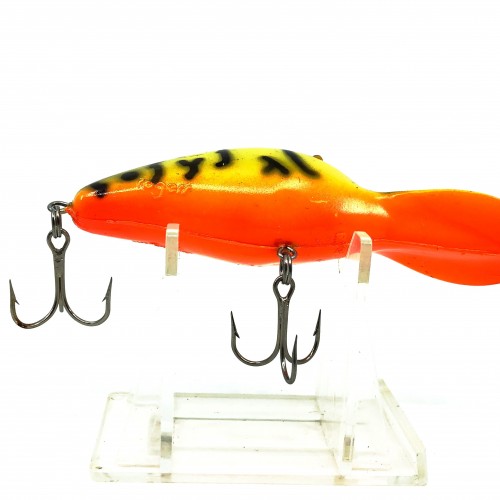 Roger’s Deep Big Jim, Chartreuse/Orange Crawdad Color. About 3 3/4″ long with the lip. Used with some wear and marks but overall good condition, see photos. Nice vintage lure here! Fish or collect!