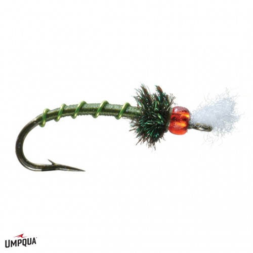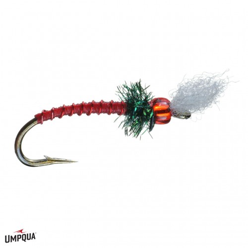 The Rojo Midge was designed for the tough classroom of Cheeseman Canyon. Greg wanted something different from the ubiquitous Black Beauty midge. When he discovered glass beads, Greg was especially curious about the red color after having read about the life cycle of midges. It was noted that frequently in the late pupa to adult stage, midges produce extra, “super-charged” hemoglobin and the color is frequently visible in the thorax of the insect. The red bead seemed like a possible attractor color that might also create a reddish visual trigger (hemoglobin). Just like Dorsey’s Mercury Midge, Greg experienced terrific results with this new color scheme and he tallied the votes from the trout’s oral endorsements. The resulting series yielded clean-looking and slim bodied midges, with the addition of white uni-stretch at the head to simulate the breathing filaments of a midge pupa.