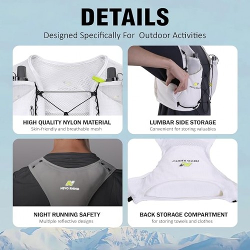 - 【Hydrate & Run】 The running vest features two TPU 250ml soft water bottles, 100% BPA-free(without water bladder). Softly bite to drink straightly—no need to break your stride or slow your pace. This hydration vest has compression straps on the sides to reduce bounce and provide a comfortable & secure fit