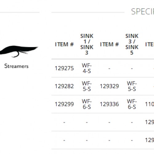 - Sink 5/Sink 7: The fastest sinking SD line, with a Sink 5 running line and Sink 7 (7.0 ips) head, designed to dredge the bottom