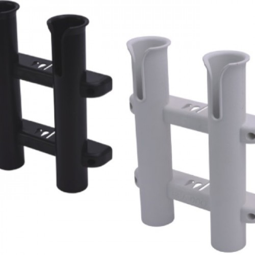These Two Pole Side Mount Rod Holders feature a built-in knife and lure holder. Accommodates rods up to 1-3/4” in diameter. Constructed from one-piece of injection molded UV stabilized polypropylene. No assembly required. Installs with four #8 fasteners (included in display packed product). Available in black or white.