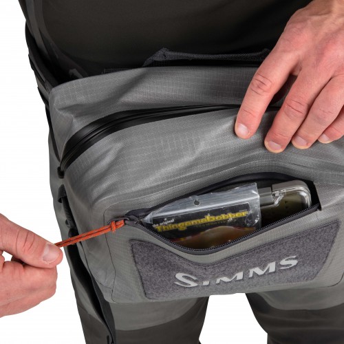 Waterproof, submersible, exceptionally rugged hip pack for carrying comfort and easy access to mission critical fishing gear.