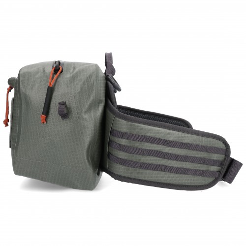 Waterproof, submersible, exceptionally rugged hip pack for carrying comfort and easy access to mission-critical fishing gear.