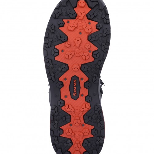 Improved waterproof, synthetic scratch leather upper with toe and heel reinforcement. Partial neoprene lining for comfort and easy on/off. Dual density EVA midsole for a comfortable ride underfoot. Updated rubber outsole package is compatible with Simms Hardbite Star Cleats, Hardbite Studs and Alumibite Star Cleats. Available with (1)RUBBER SOLE or (2)FELT SOLE.