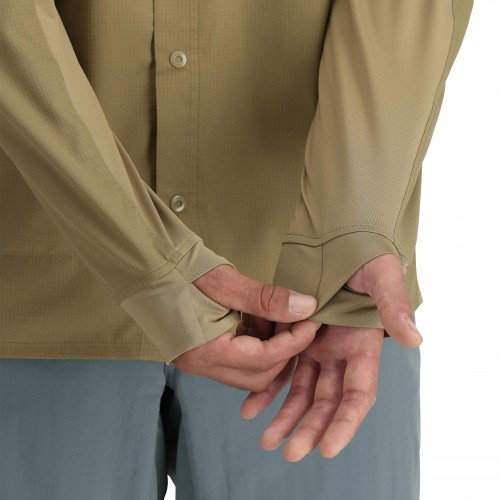 - Cuffs constructed with SolarFlex® knit fabric, with extended length and envelope thumbholes for back-of-hand sun protection.