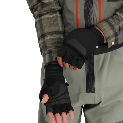 The warmest, most technically advanced convertible fishing glove in the Simms lineup. Provides cold-day comfort in a pinch and casting dexterity with a rod in hand. GORE-TEX WINDSTOPPER stretch fleece offers warmth, water resistance, and protection from the wind. 2-in-1 mitten and half-finger glove. Unique stowable overmitt prevents line snag. Textured TPU palm overlays for enhanced durability and grip.
