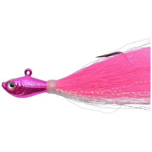 The SPRO Bucktail Jig is a 2 ounce bucktail hair jig. The SPRO Bucktail Jig has a unique head shape eyelet and placement which gives it a natural gliding action. When jigged, its body stays parallel for great jigging action. The Bucktail Jigs are made with durable, super sharp Gamakatsu hooks and come in an array of fish-catching colors
