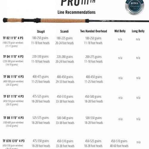 The Pro III TH series is offered in six rod models, in a two-weight through eight-weight, in lengths of 11 to 13-feet. All two-handed rods feature a grain and gram windows for easy line pairing.