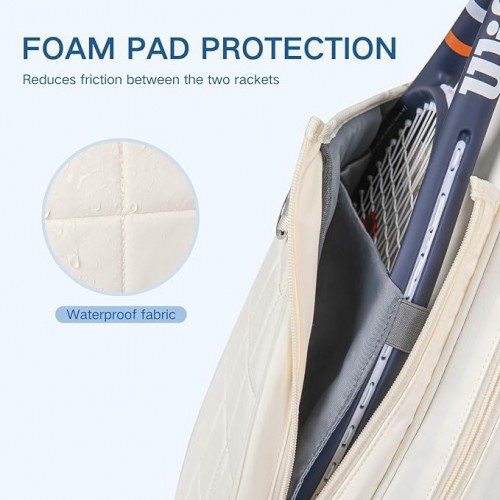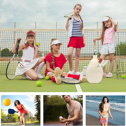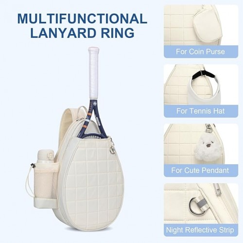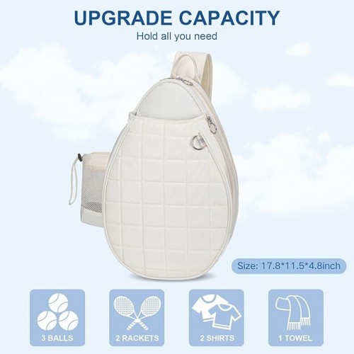 Tennis Bag, Quilted Tennis Backpack Holds 2 Rackets, Waterproof Crossbody Sling Pickleball Bags for Women, Men and Youth