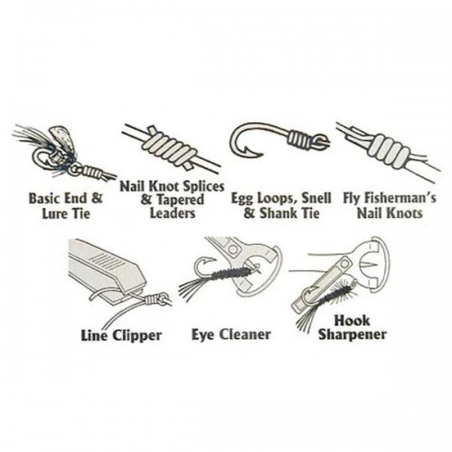 The Tie-Fast Magnum Combo Tool includes a big, super-sharp nipper great for cutting heavy line, a nail knot tool (the simplest way to tie this tricky knot), an eye-cleaning needle, convenient hook file, and a hook hone for removing deeply set hooks.