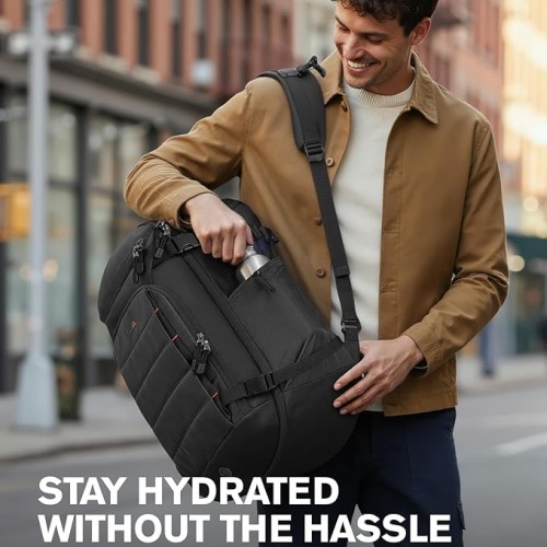 - 【7L Wet-Dry Compartment & Large Water Bottle Holder】Stay fresh and organized. A 7L front wet-dry compartment lined with eco-friendly aluminum film keeps sweaty or used clothes, towels, or swimwear separate. The large side pocket fits bottles up to 40oz (base under 4″) and secures with an elastic cord. This travel laptop backpack keeps gym, hiking, or outdoor essentials organized and accessible