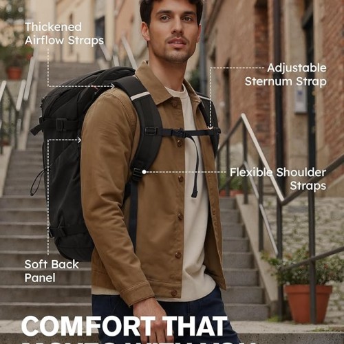 - 【Durable, Comfortable & Flight-Approved】Built for long-lasting travel. Reinforced stitching, bar-tacks at stress points, and premium SBS zippers ensure long-term durability even after frequent use. Breathable padded back panel and adjustable chest strap ensure comfort during long wear. Stowable shoulder straps keep backpack neat when hand-carrying or attached to luggage handles. Flight-approved size fits most U.S. airline overhead bins, making this carry on backpack easy and perfect for travel