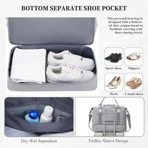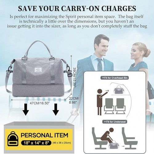 - Airplane Friendly Carry on Bag: The weekender bags for women size is 18.50x 8.66 x 15.35 inches and meets most international carry-on requirements. It can fit in the overhead compartment in flight. Using this carry on bags for airplanes women can save your carry-on charges