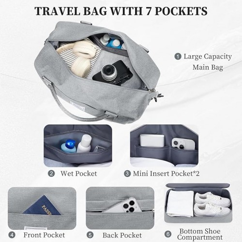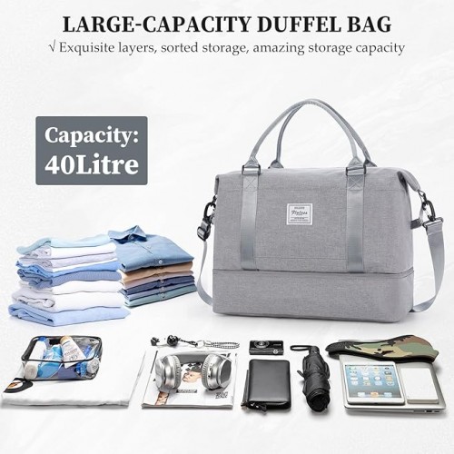 - Large Capacity & Multi Pockets: This duffle bag with total 7 pockets to keep your personal items organized, roomy space can even fit in 3-5 days of daily essentials. Keep everything organized and easily accessible. This travel bag is perfect choice for women’s travel, camping and many outdoor activities. The capacity is 40L