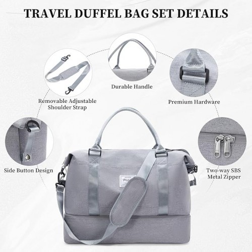 - Shoe Compartment & Dry-Wet Separation: Separate flat bottom compartment of this travel duffel bag can hold your shoes or dirty clothes for easy separation from clean clothes when traveling. This gym duffel bag has a waterproof PVC lined pocket that separates wet and dry items like clothes, towels and swimsuits,perfect as gym bag