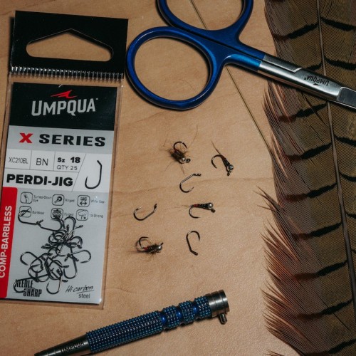The XC210 pairs especially well with Umpqua’s Jig Bomb beads, but also works with standard slotted or even a countersunk bead.