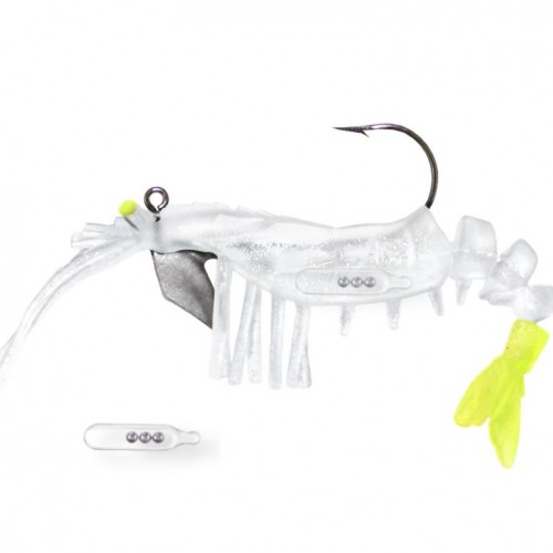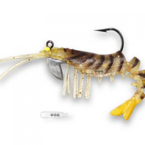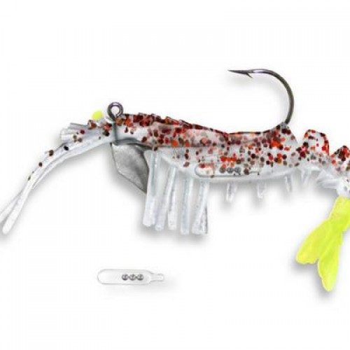 The Vudu Rattling Shrimp is a 3.5-inch model with a kangaroo-like belly pocket designed to hold an internal rattle. The internal rattle can also be removed if a quiet presentation is preferred. The empty pocket is also a great place to add some Pro-cure Scent Sauce.