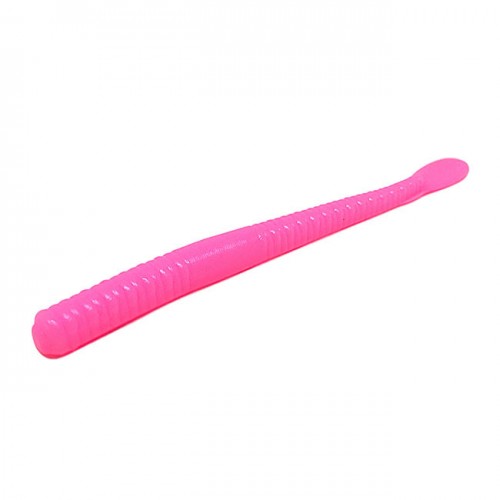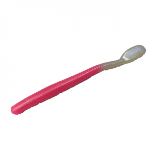 A translucent pink worm with a chartreuse tail up the shank.