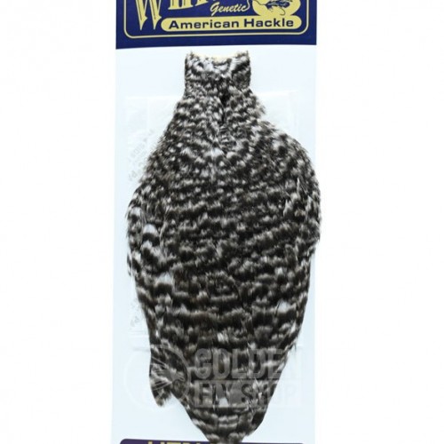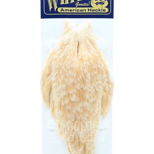 The feathers from the hen cape of the Whiting Farms American Hackle are some of the most broadly versatile tying feathers available. They have a greater density of web than any other hen hackle and typically the roundest tips. In addition the feathers are both long and broad with a more substantial quill.