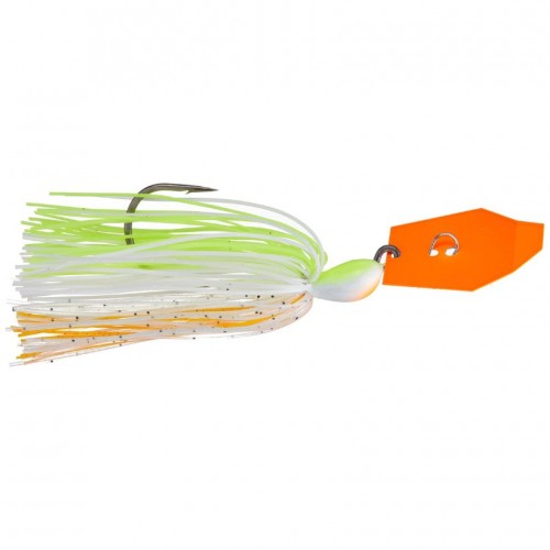 Designed by pro angler Bryan Thrift, the Z-Man Big Blade Chatterbait delivers powerful vibration and thump thanks to its oversized hex-shaped ChatterBlade. Ideal for targeting big bass, it excels in dirty or stained water by displacing water and drawing fish from afar. Its dual conical keeper barbs securely hold soft plastic trailers, while hand-tied silicone skirts ensure durability. Fitted with a heavy-duty 6/0