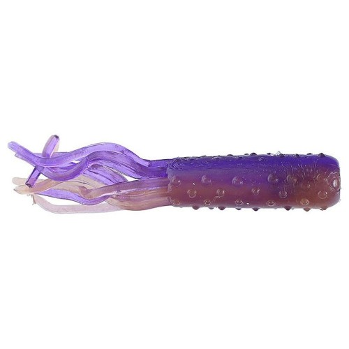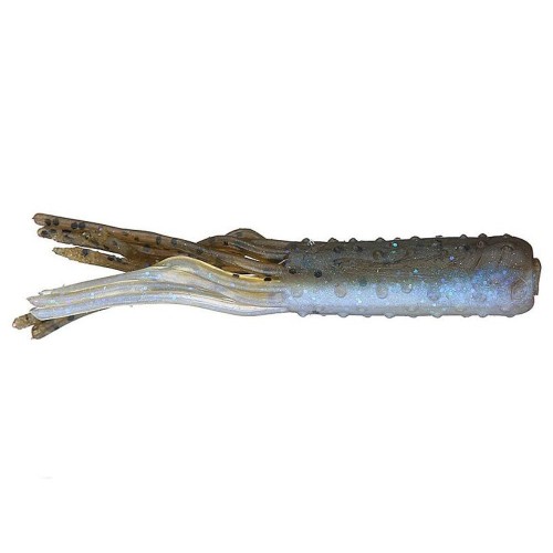 - Solid nose for easy rigging on a jighead, but hollow body for spiraling, bubbling descent found with traditional tube baits
